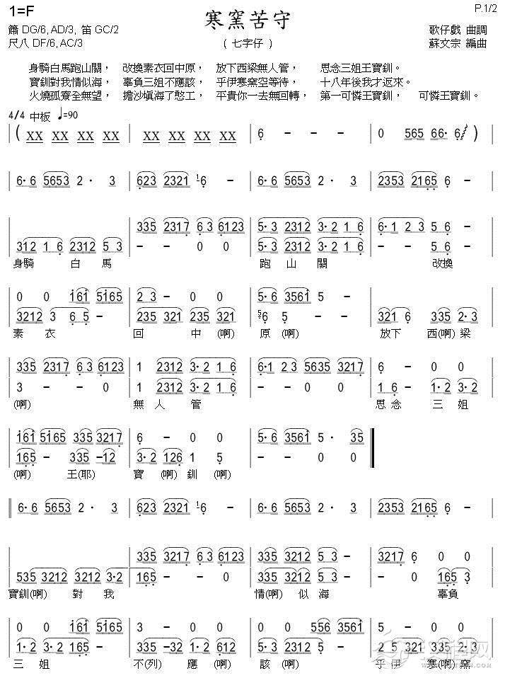 戏曲曲谱[粤曲]情寄凤求凰(工尺谱)