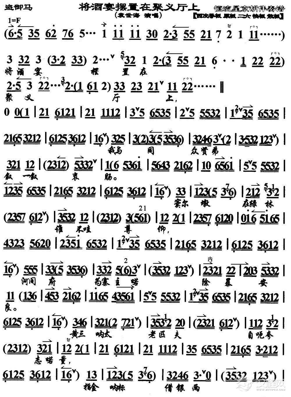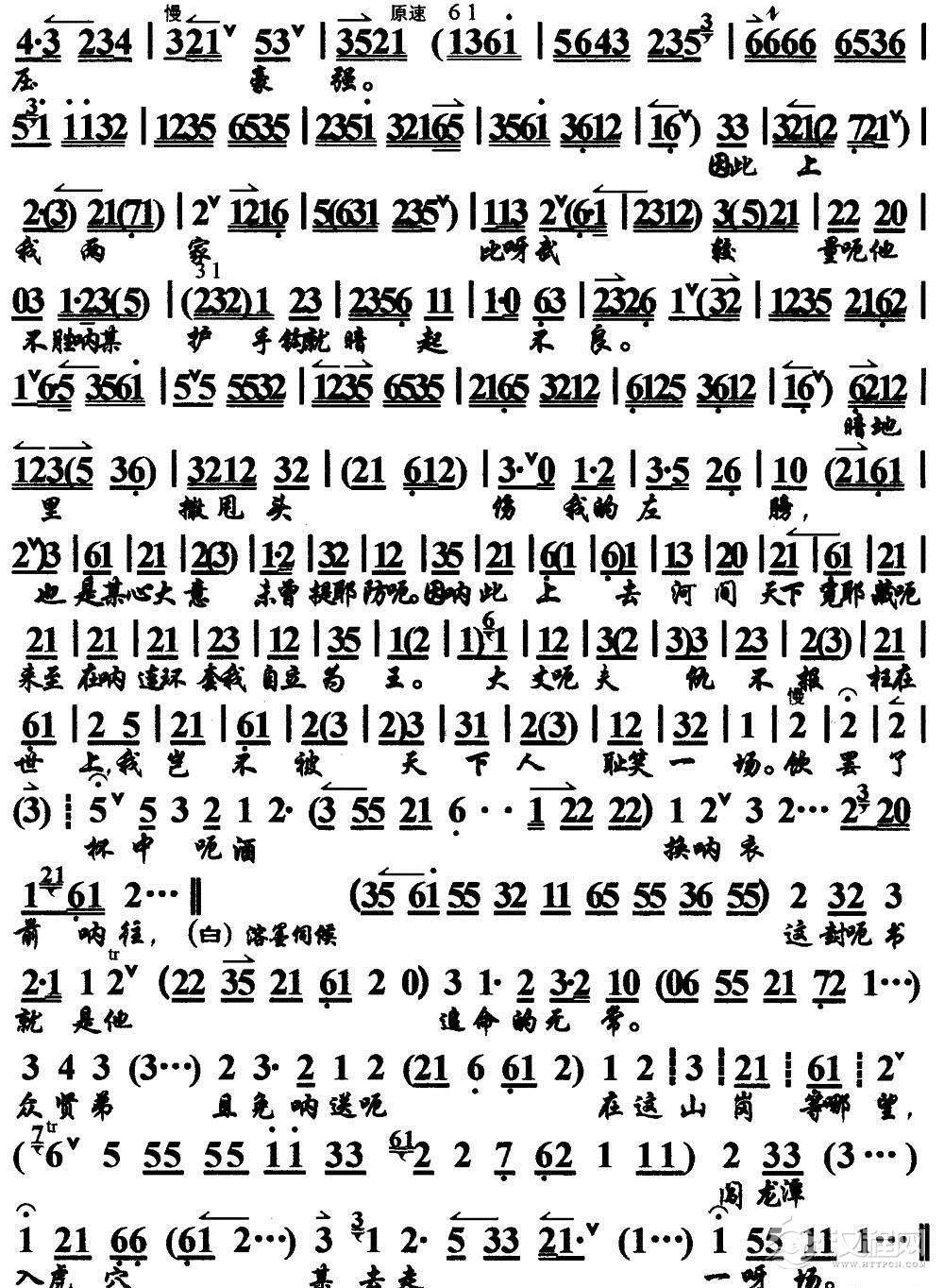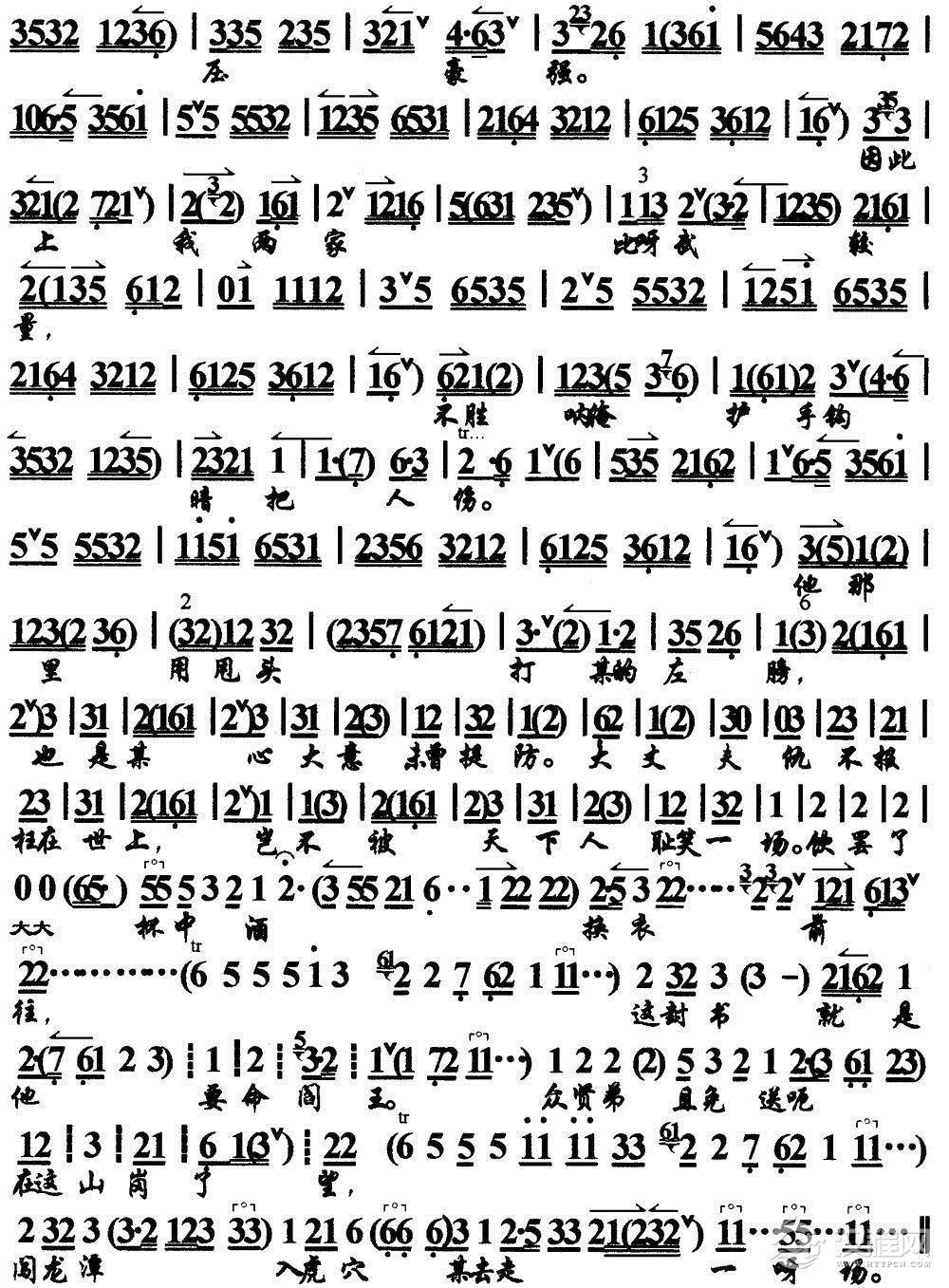 戏曲曲谱酒逢知己千杯少(《群英会》选段、琴谱)