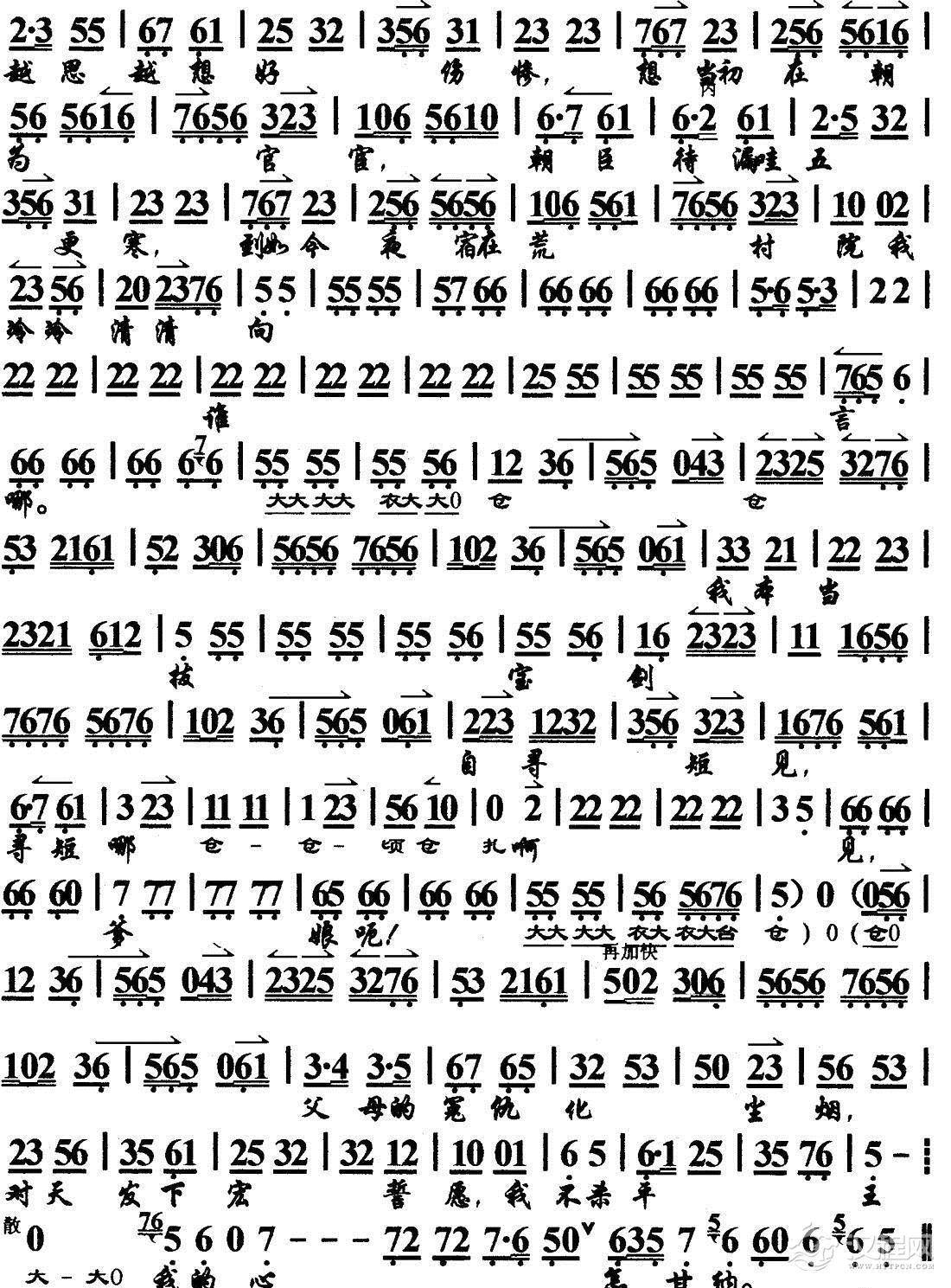戏曲曲谱过了一天又一天(《文昭关》选段、琴谱)