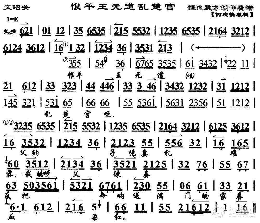 戏曲曲谱伍员马上怒气冲(《文昭关》选段、琴谱)