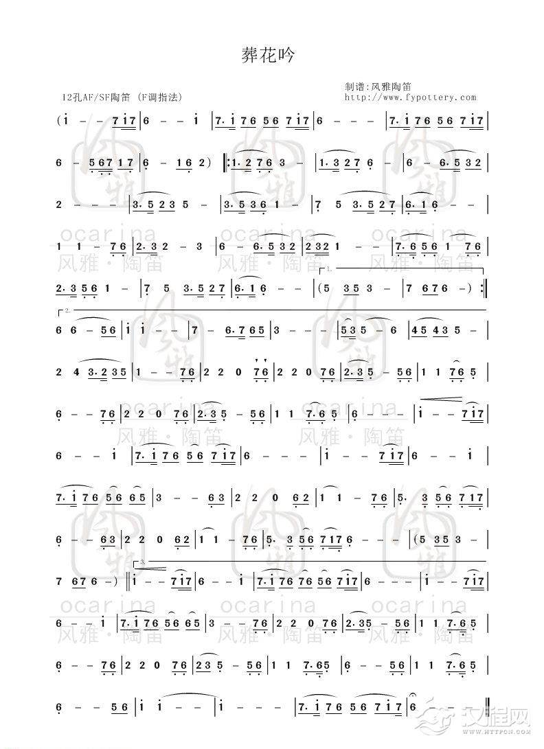 曲谱大全【F调陶笛谱】哭砂 F调指法