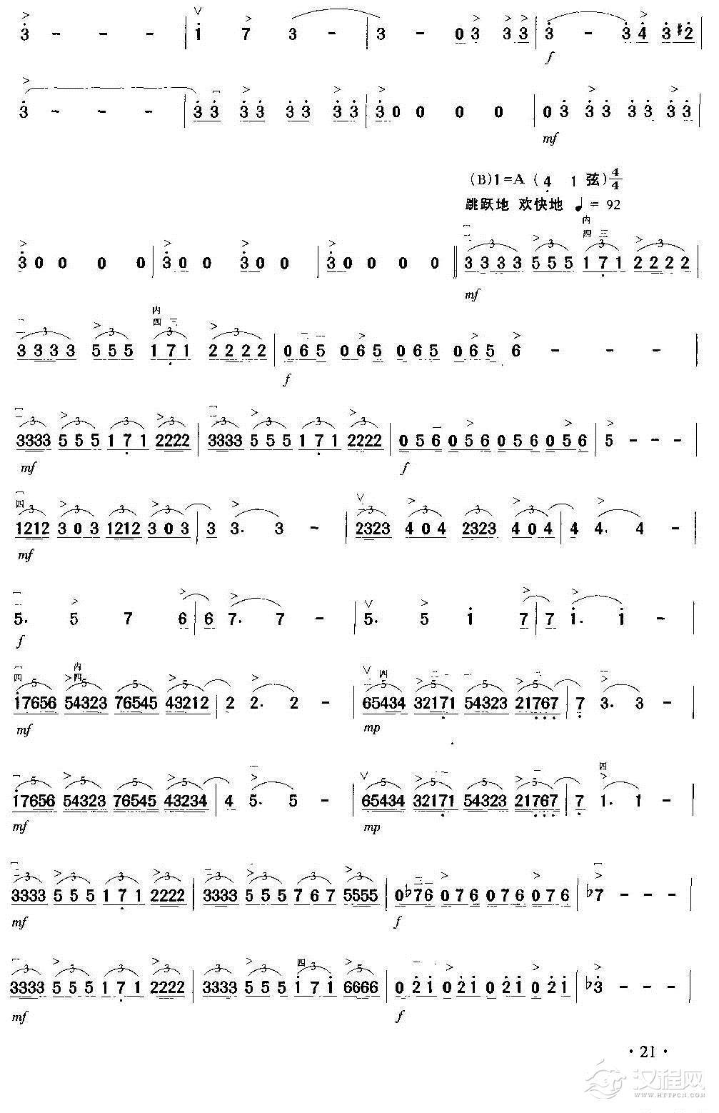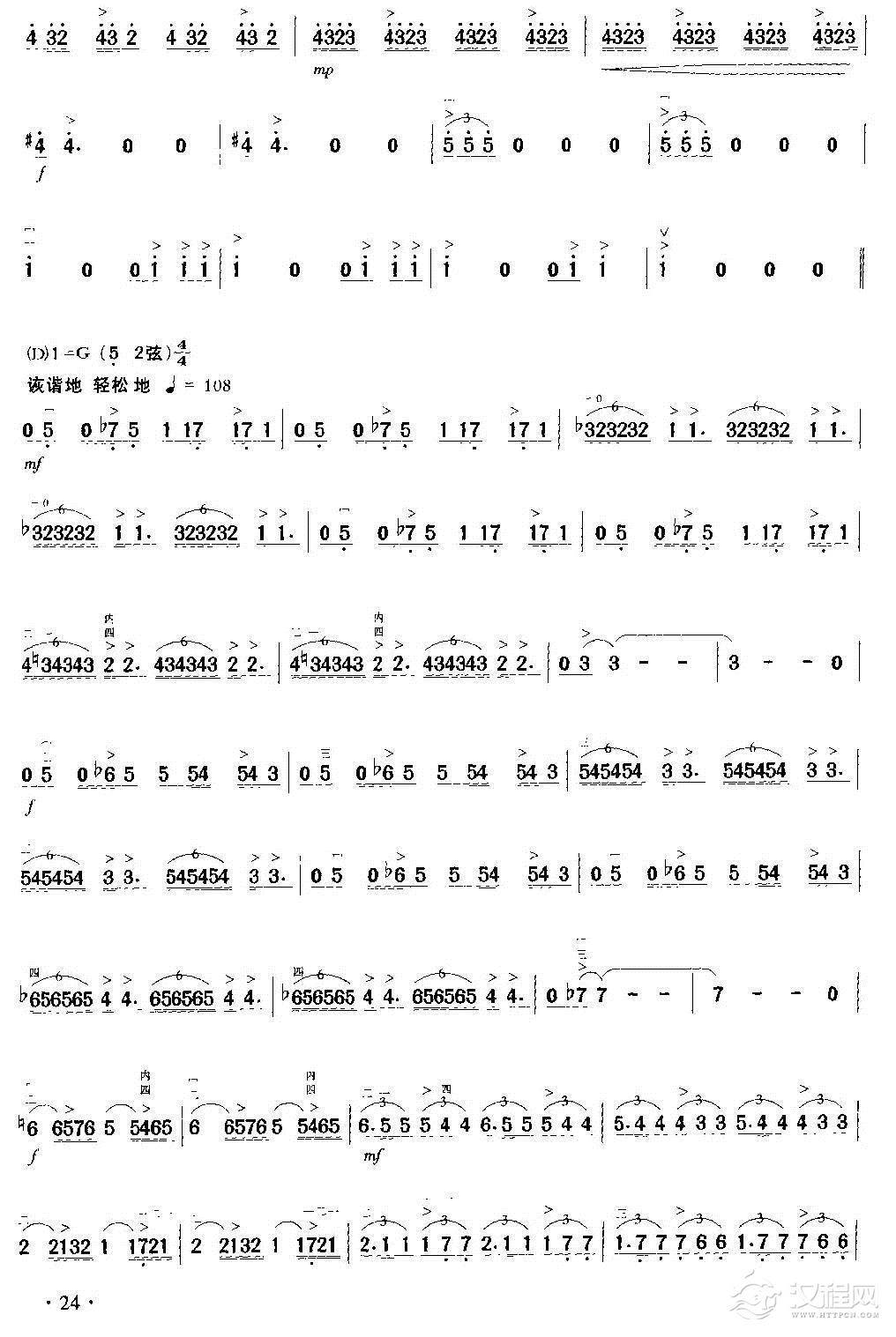 曲谱大全柳琴考级曲目六级:弹起我心爱的土琵琶