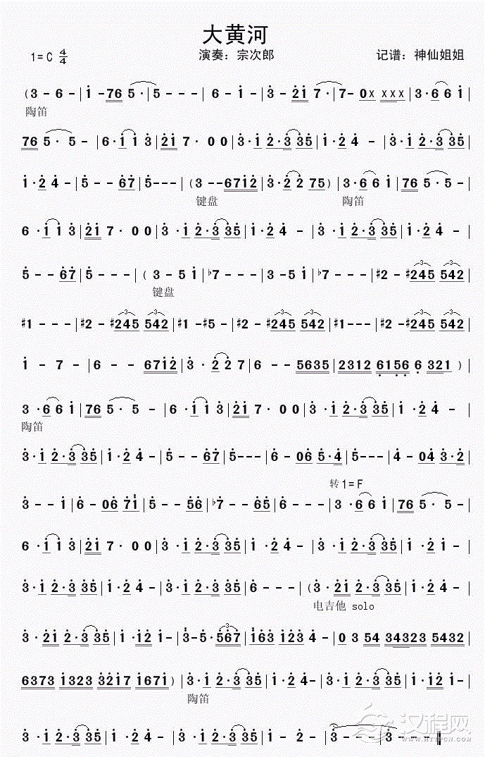 曲谱大全【F调陶笛谱】哭砂 F调指法