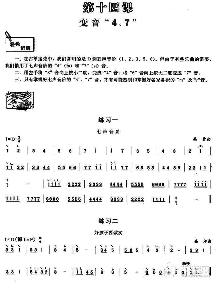 古筝变音“4、7”练习