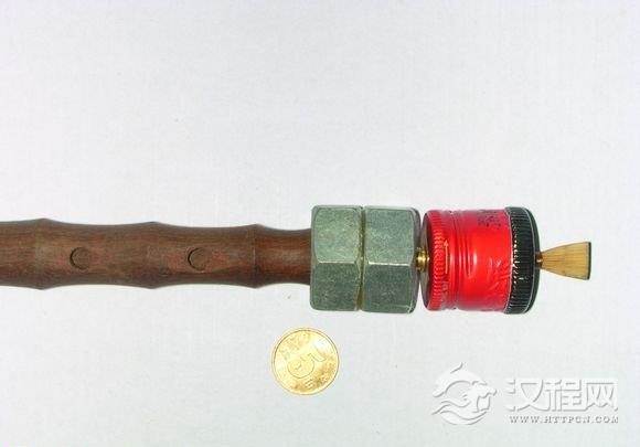 巧的很,标准件20毫米内径六方螺帽正好旋接于唢呐杆。