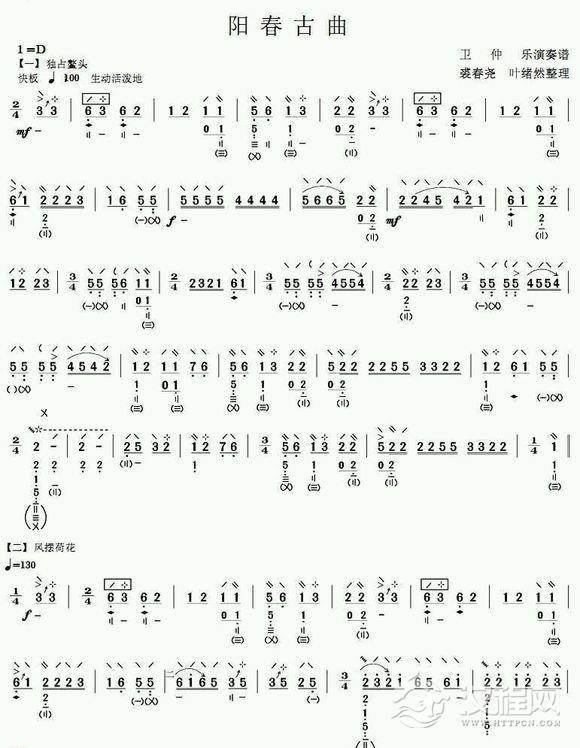 曲谱大全琵琶乐曲《阳春古曲》