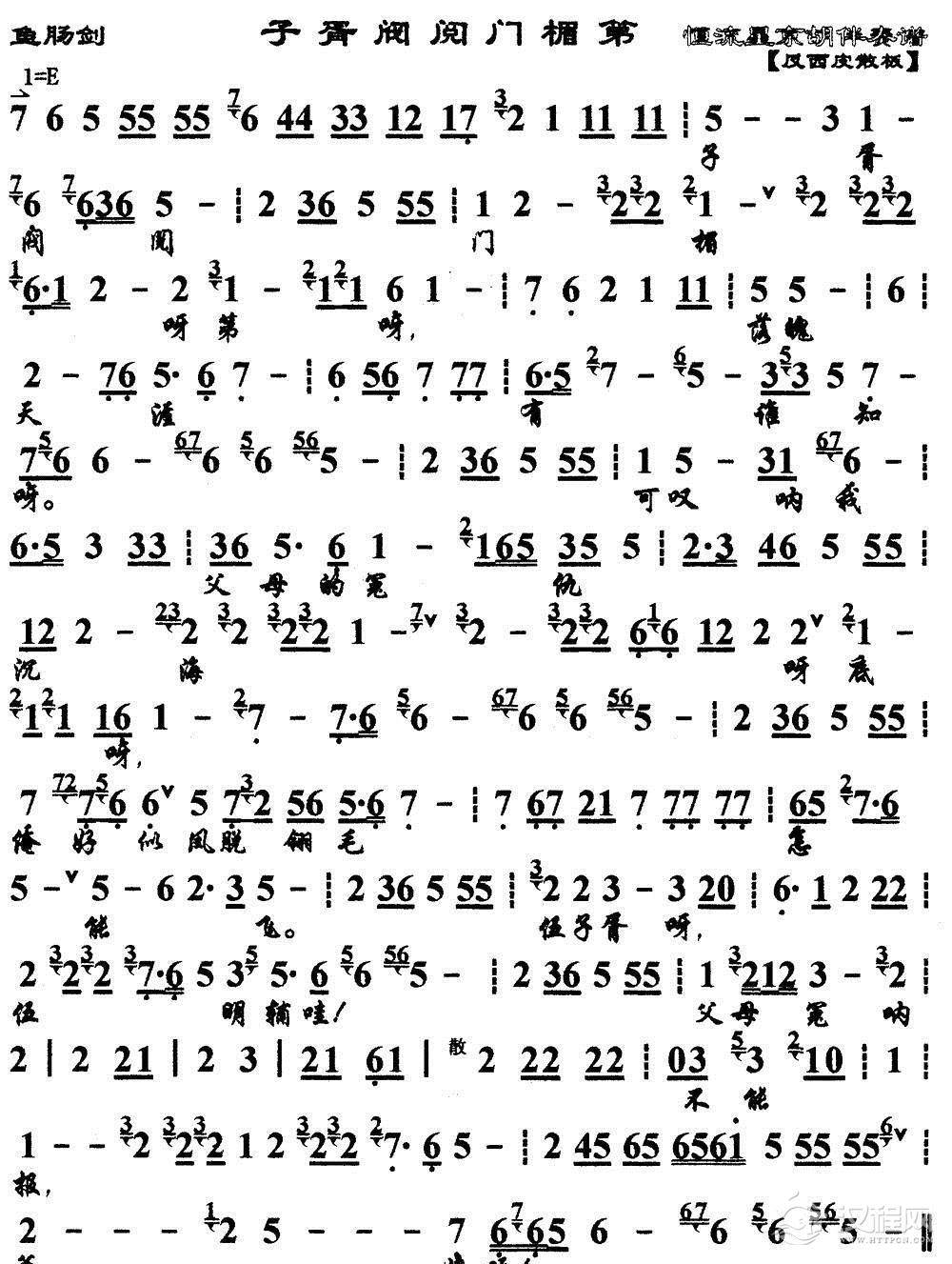 戏曲曲谱父子们在深宫伤心落泪(《逍遥津》选段、琴谱)