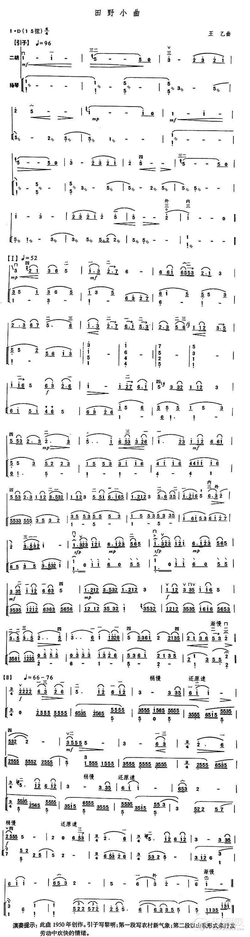 曲谱大全柳琴考级曲目九级:田野琴声
