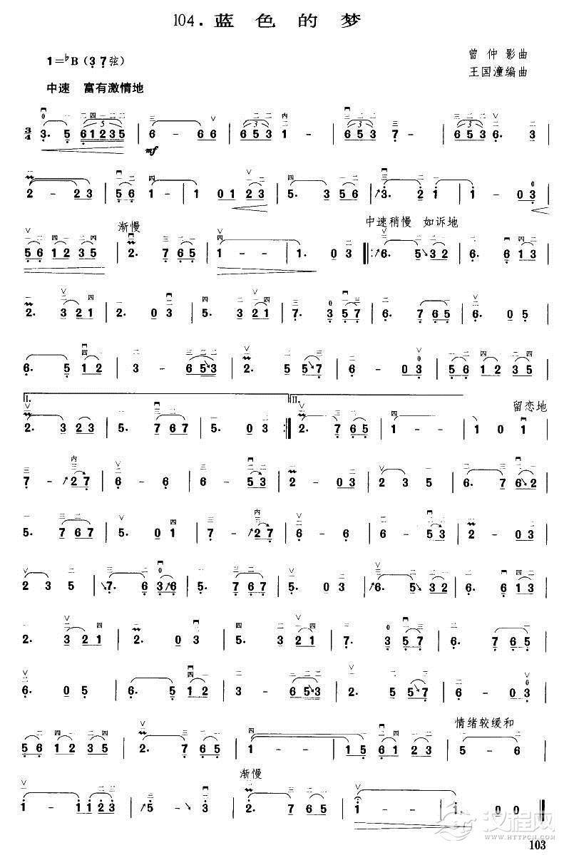曲谱大全柳琴考级曲目四级:在希望的田野上