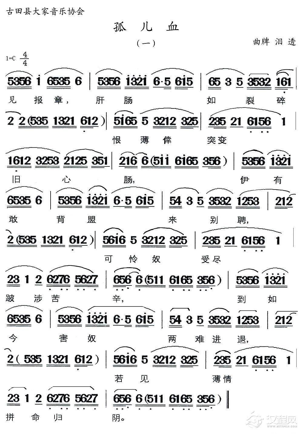 戏曲曲谱[闽剧] 孤儿血(二)(曲牌:自掏岭)