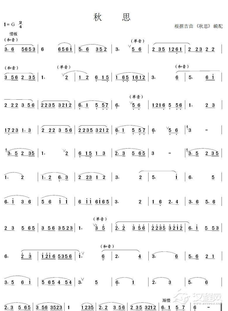 曲谱大全洞箫乐曲谱《平湖秋月》王铁锤