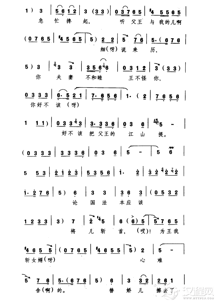 戏曲曲谱恨平王无道乱楚宫(《文昭关》选段、琴谱)