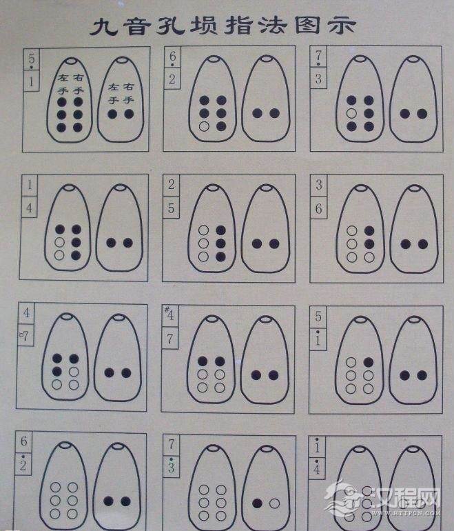 【九孔埙指法】九孔埙入门方法及九音孔埙指法图示