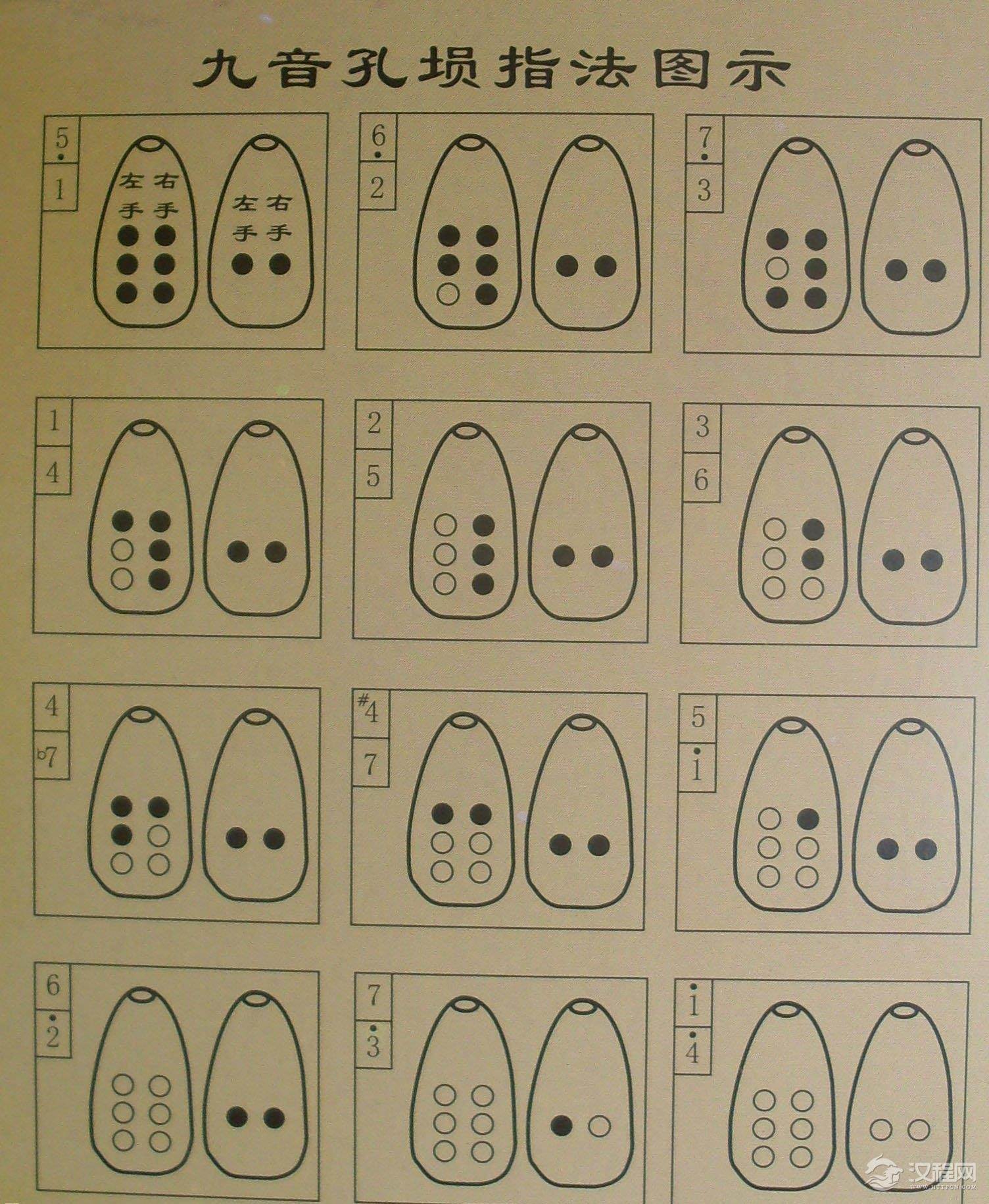 乐器学习十孔埙指法图,空谷十孔埙高清指法图片