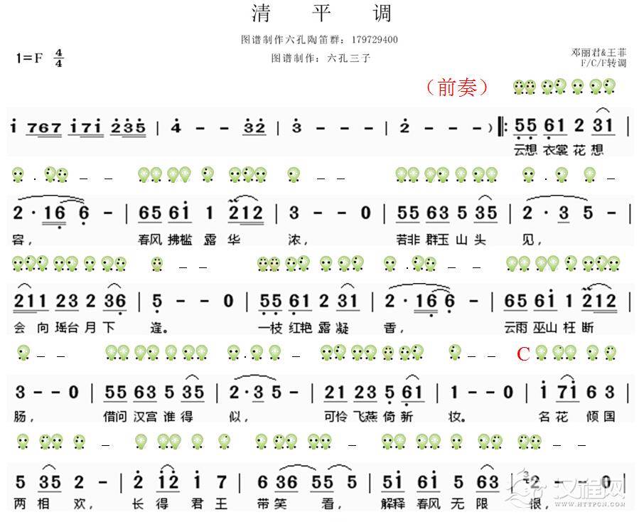 清平调(六孔陶笛谱)