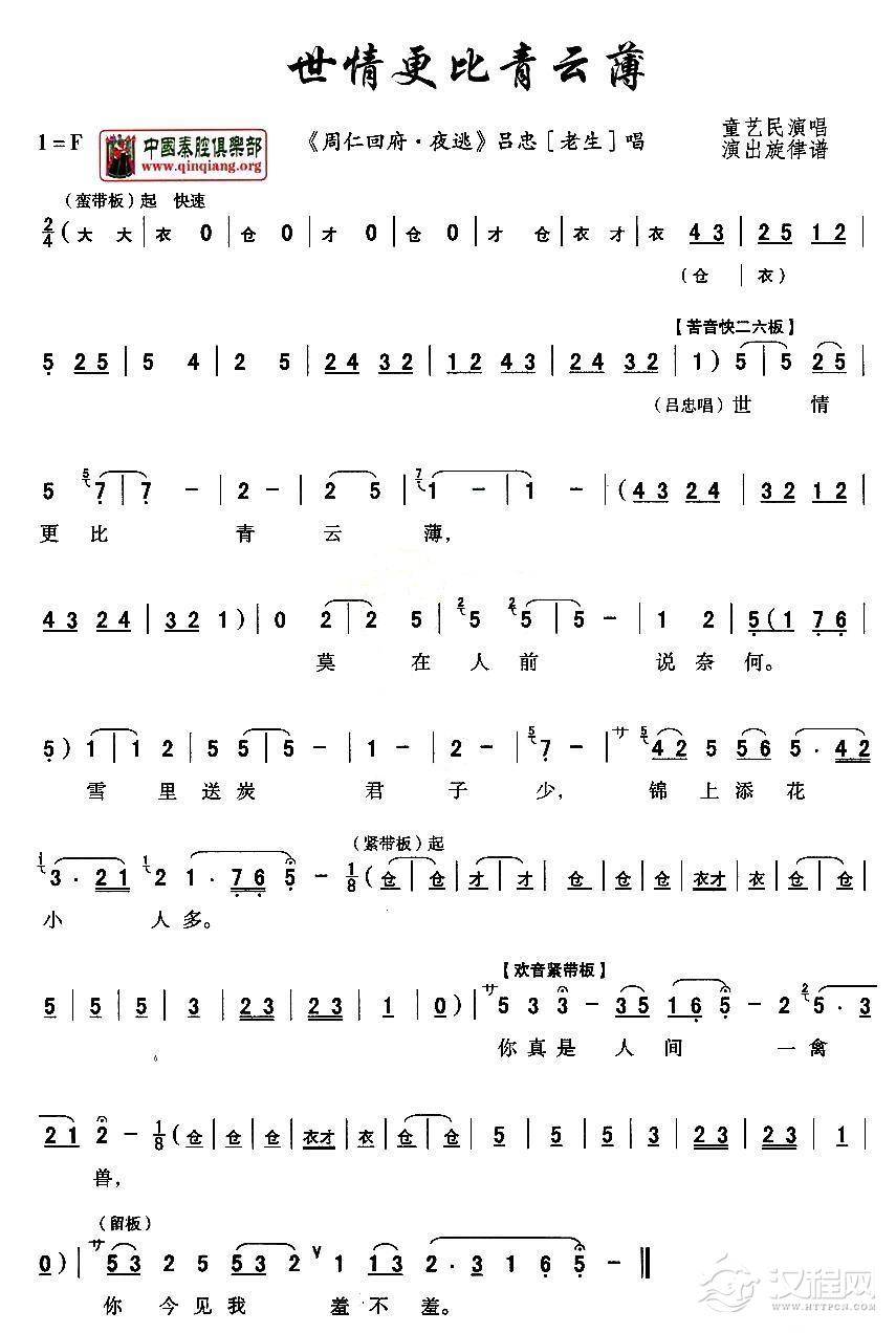 戏曲曲谱[秦腔]夫妻们分生死人世至痛(《周仁回府》周仁唱段)