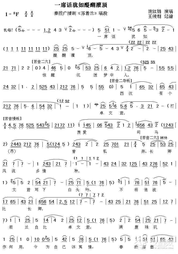 戏曲曲谱[秦腔]想汴梁恨汴梁汴梁又见(《秦香莲后传》唱段)