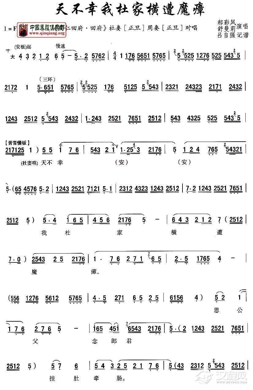 戏曲曲谱[秦腔]夫妻们分生死人世至痛(《周仁回府》周仁唱段)