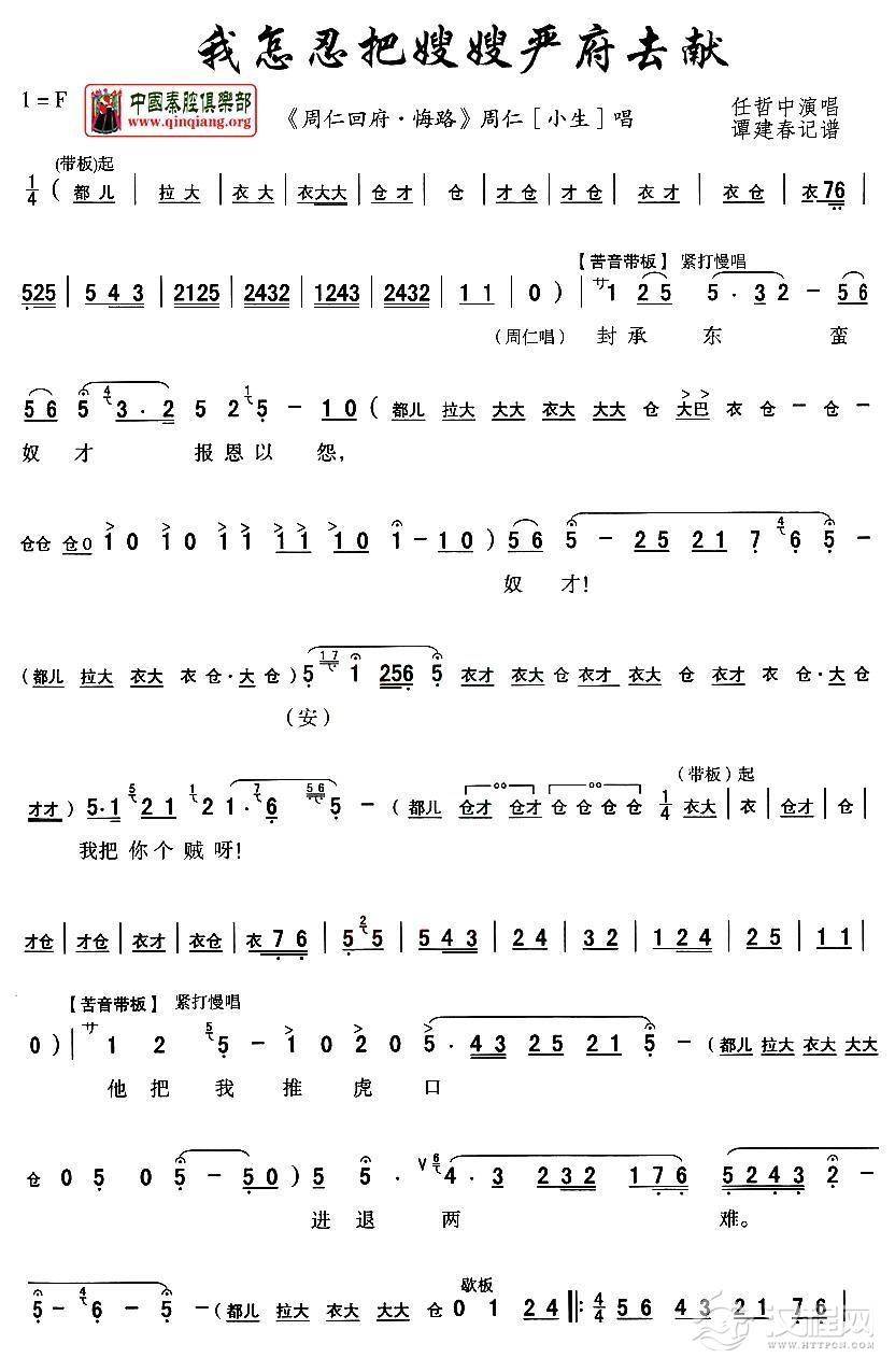 戏曲曲谱[秦腔]夫妻们分生死人世至痛(《周仁回府》周仁唱段)