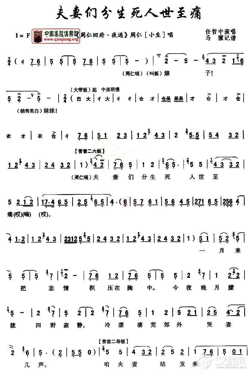 戏曲曲谱[秦腔]痛煞胡秀英(《周仁回府》胡秀英唱段)