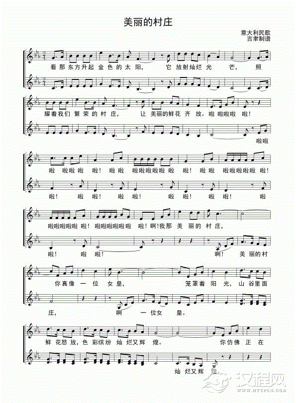 【美丽的村庄】五线谱与简谱,共四页,请注意分页