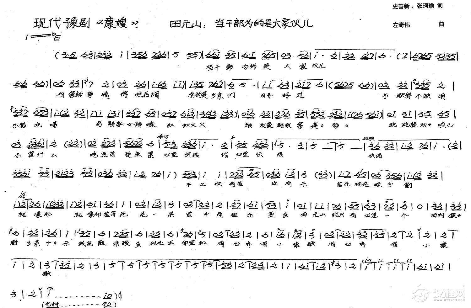 戏曲曲谱这些年风风雨雨亲身体验(豫剧《康嫂》选段)