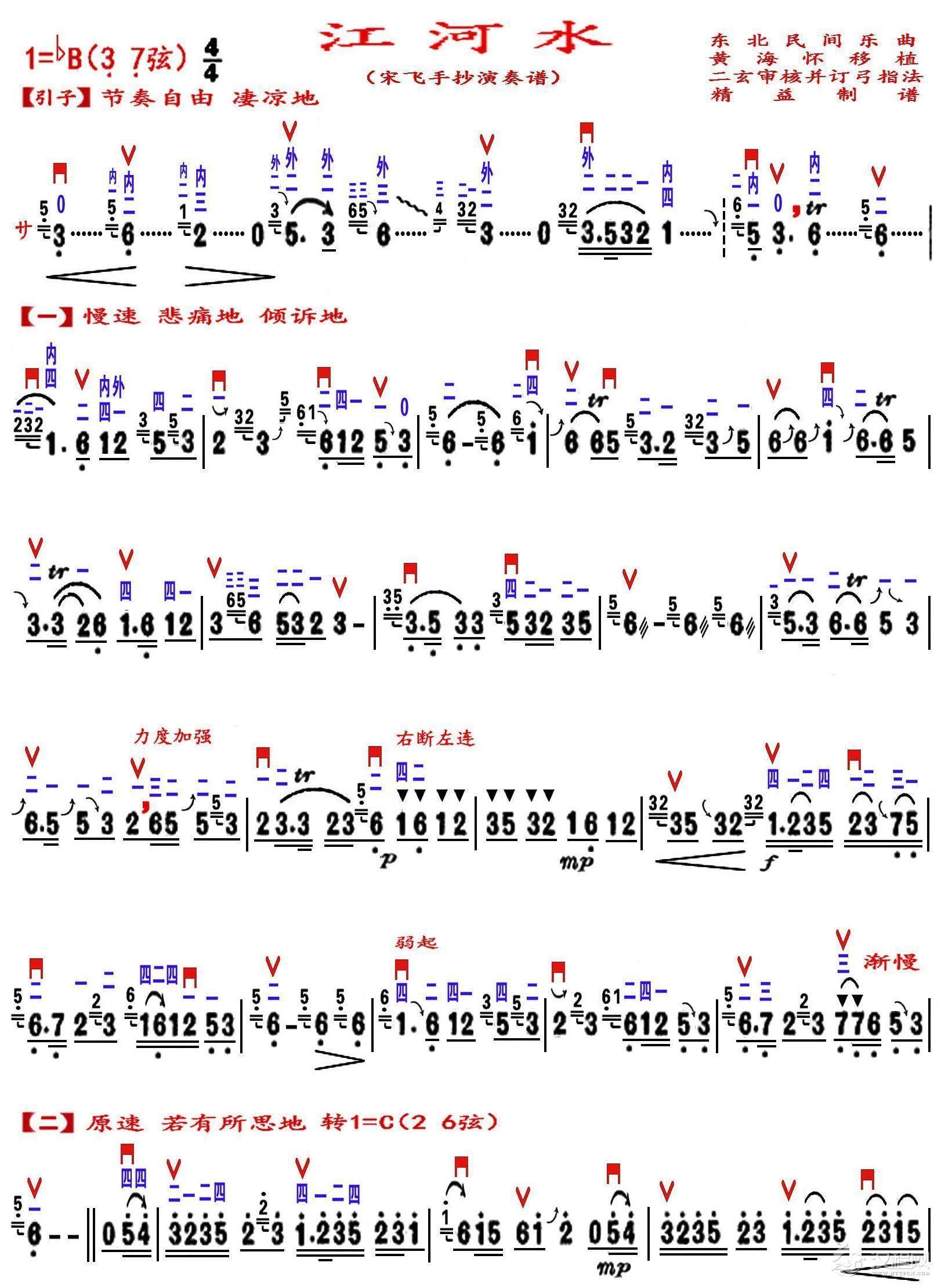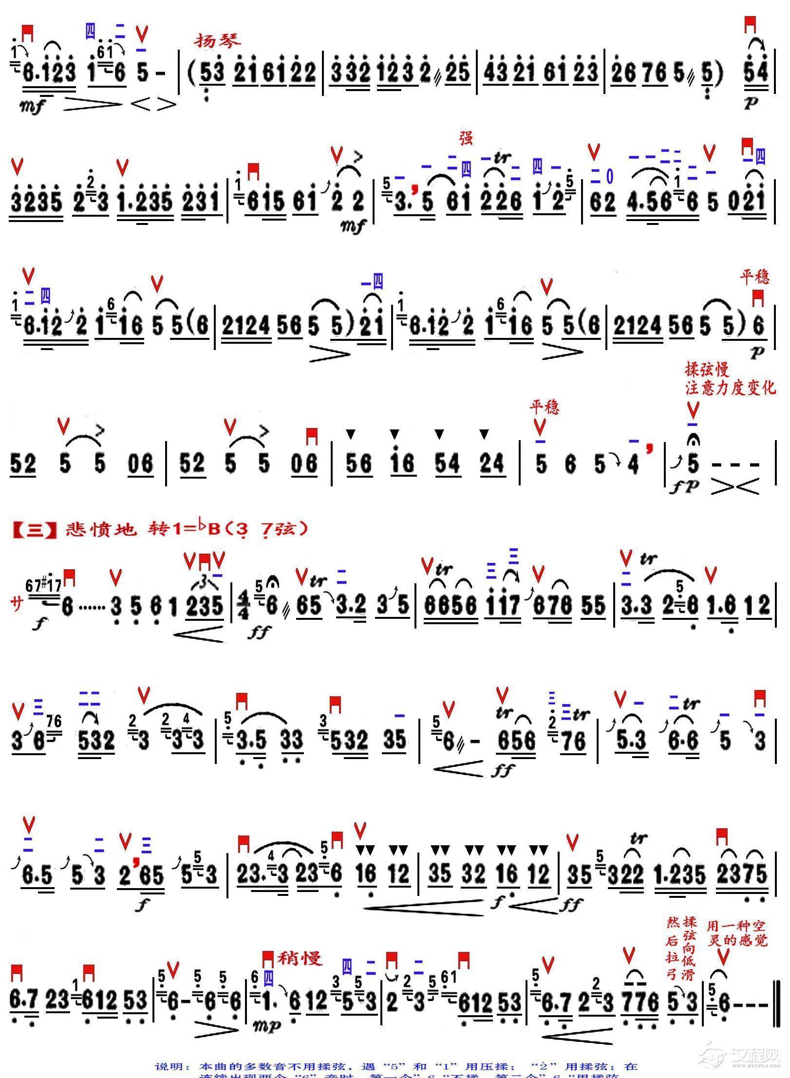 曲谱大全大寨红花遍地开(三弦分谱1)