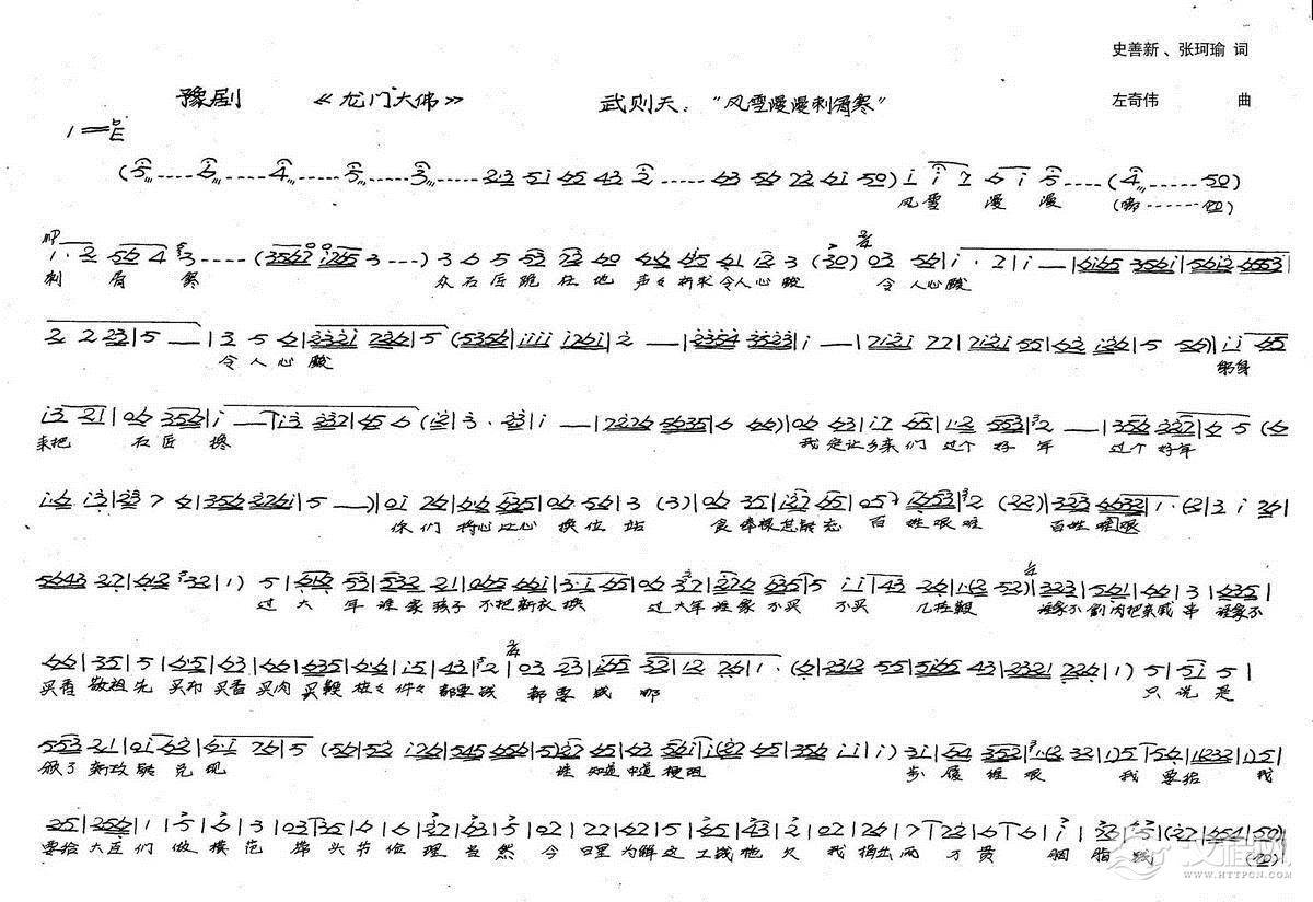 戏曲曲谱武则天唱:一路上察民情气爽风柔(新创历史豫剧《龙门大佛》选段)
