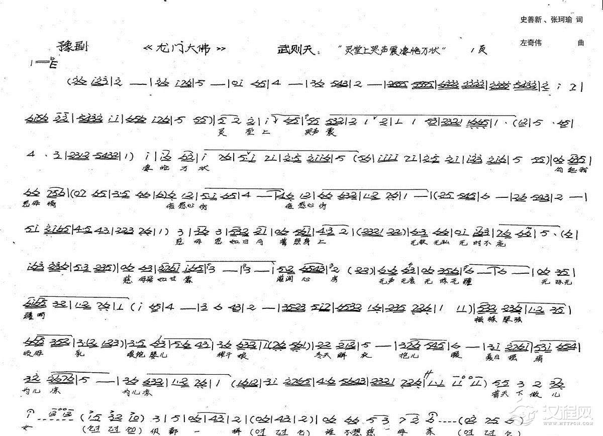 戏曲曲谱武则天唱:风雪漫漫刺骨寒(新创历史豫剧《龙门大佛》选段)