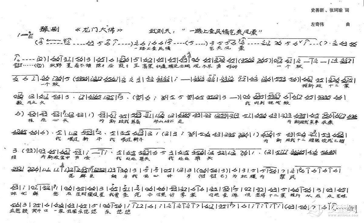 戏曲曲谱武则天唱下凤辇上龙门登高眺远(新创历史豫剧《龙门大佛》选段)