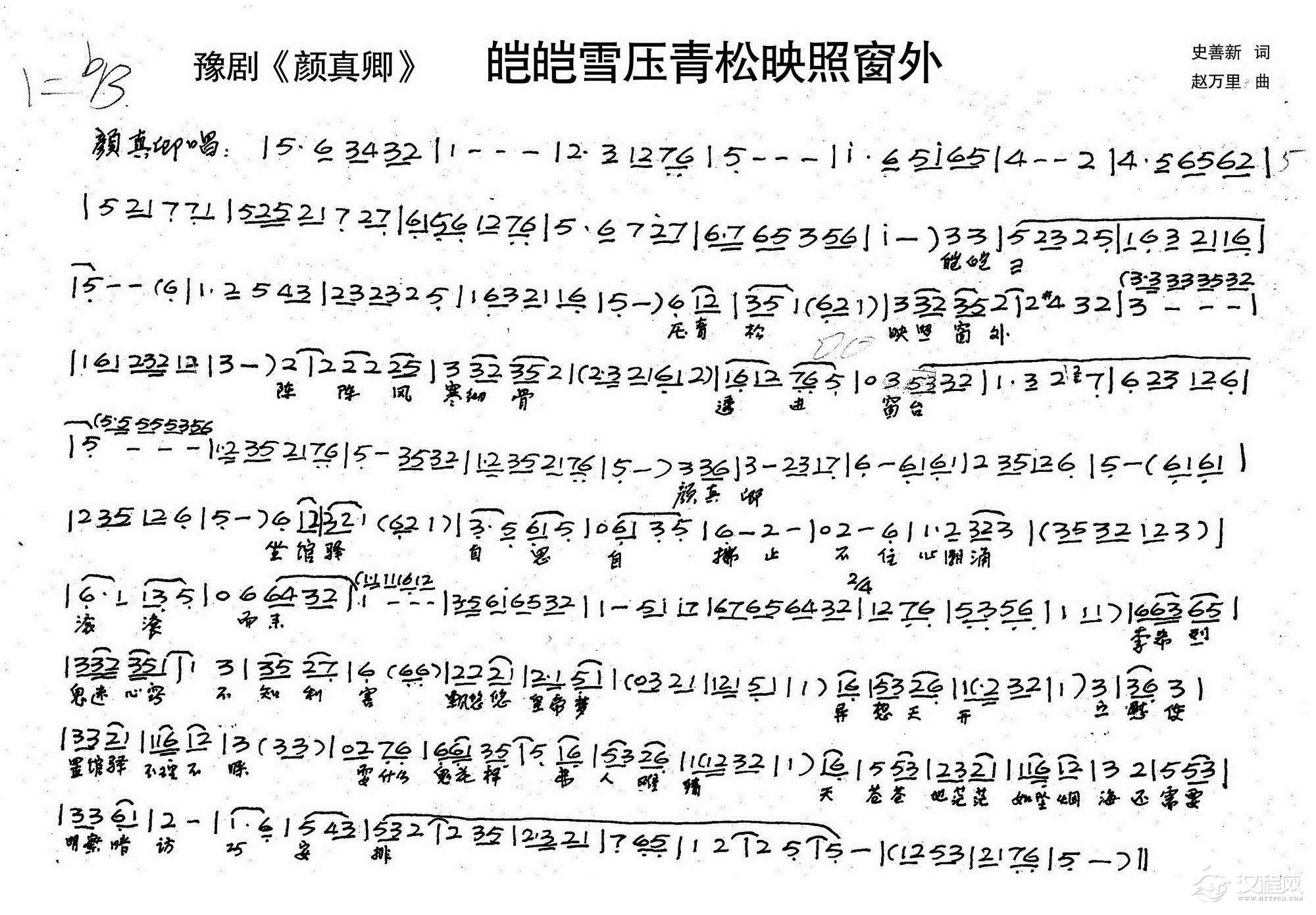 戏曲曲谱窦瑛:正月里依然是寒风料峭(历史豫剧《颜真卿》选段)