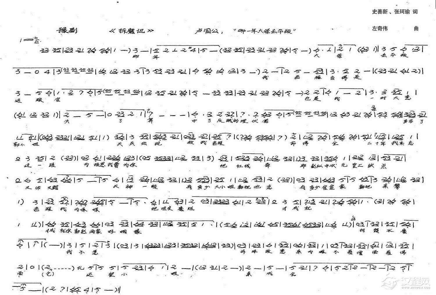 戏曲曲谱颜真卿:想当年安禄山虎狼一样(历史豫剧《颜真卿》选段)