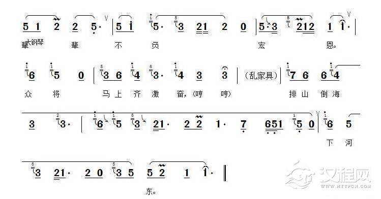 戏曲曲谱辞别千岁长安转(马派)(《淮河营》选段、琴谱)
