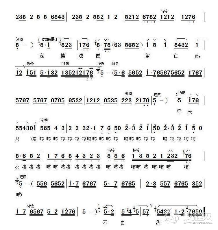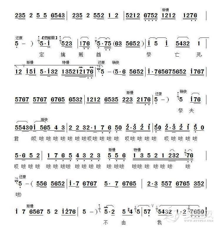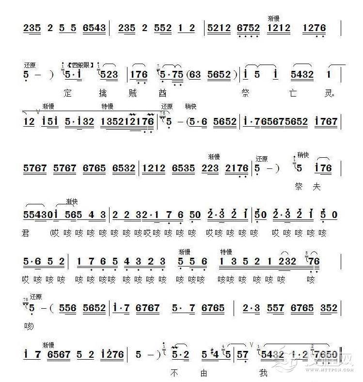 戏曲曲谱狂风日落乌鸦噪(马派)(《春秋笔》选段、琴谱)