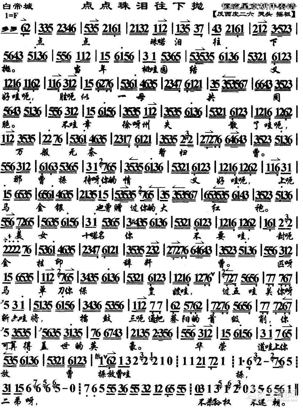 戏曲曲谱白甲白盔白旗号(《白帝城》选段、琴谱)