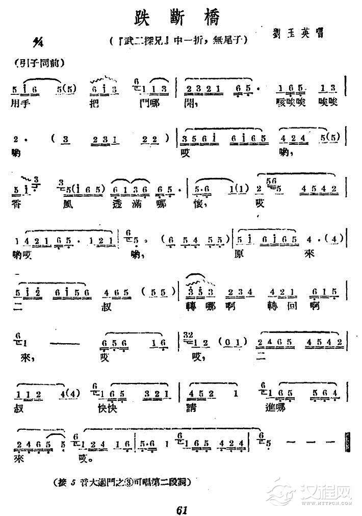 戏曲曲谱[广西文场]扬州红(《武二探兄》选段)