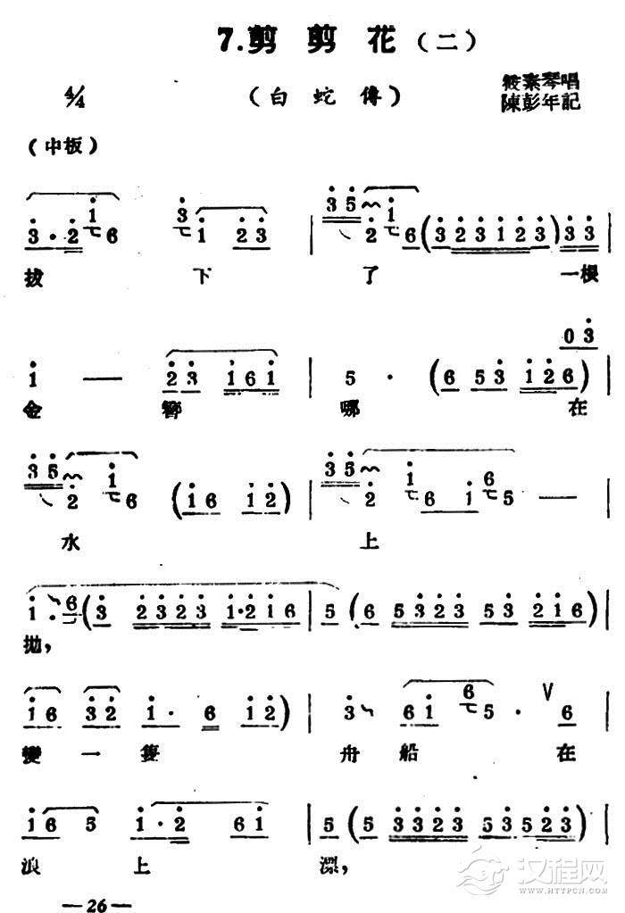 戏曲曲谱[扬剧曲牌] 汉调(梁山伯与祝英台/断桥)