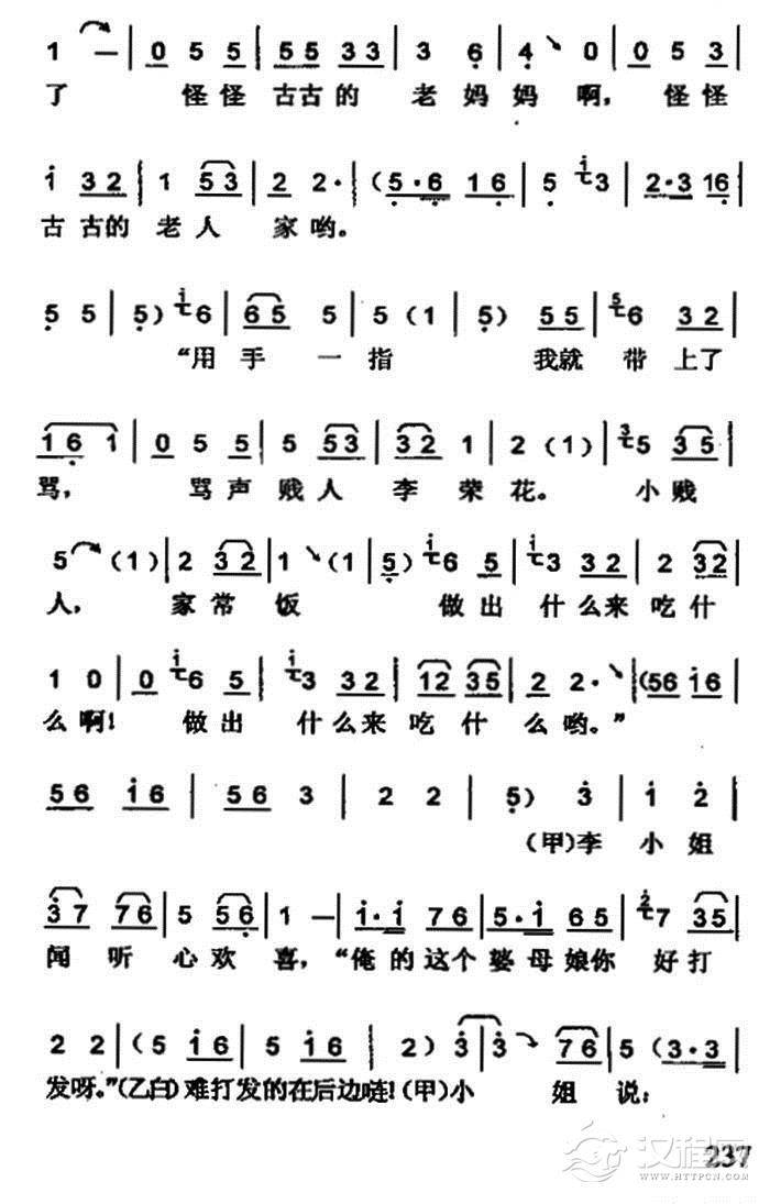 戏曲曲谱二叔他撂下话逼我开口(豫剧《康嫂》选段)