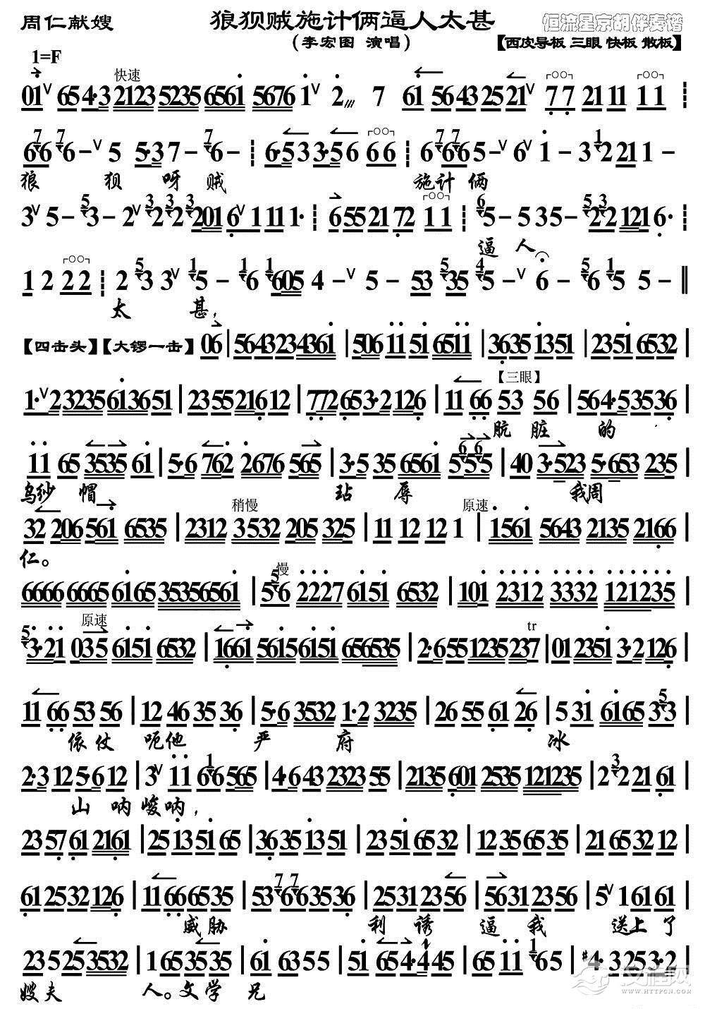戏曲曲谱平日里讲过千百遍(《年年有余》雷老四唱段、琴谱)