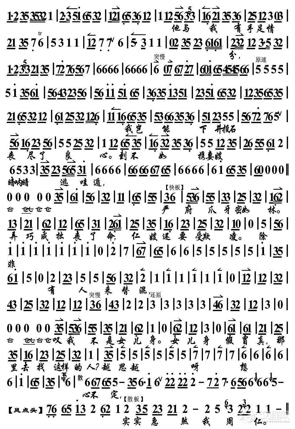 戏曲曲谱我笑儿的愚我笑儿的陋(《孟母断机》孟母唱段、琴谱)