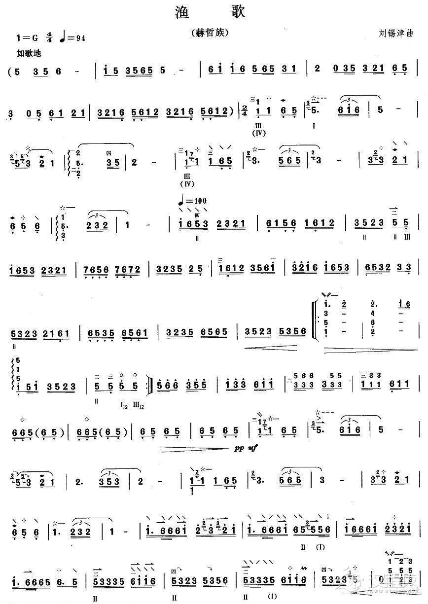 曲谱大全柳琴考级曲谱【柳琴考级曲目七级:唱支山歌给党听】