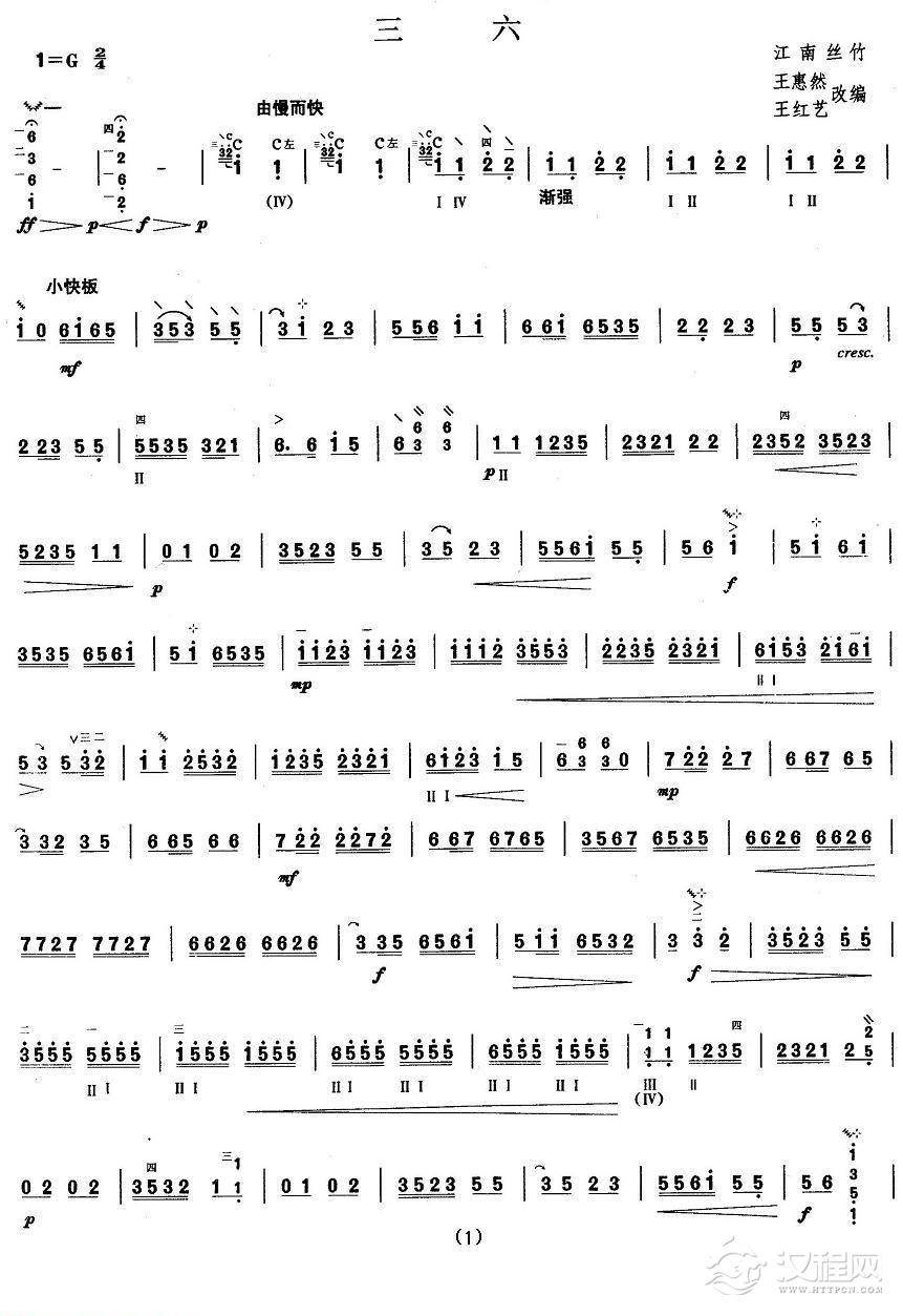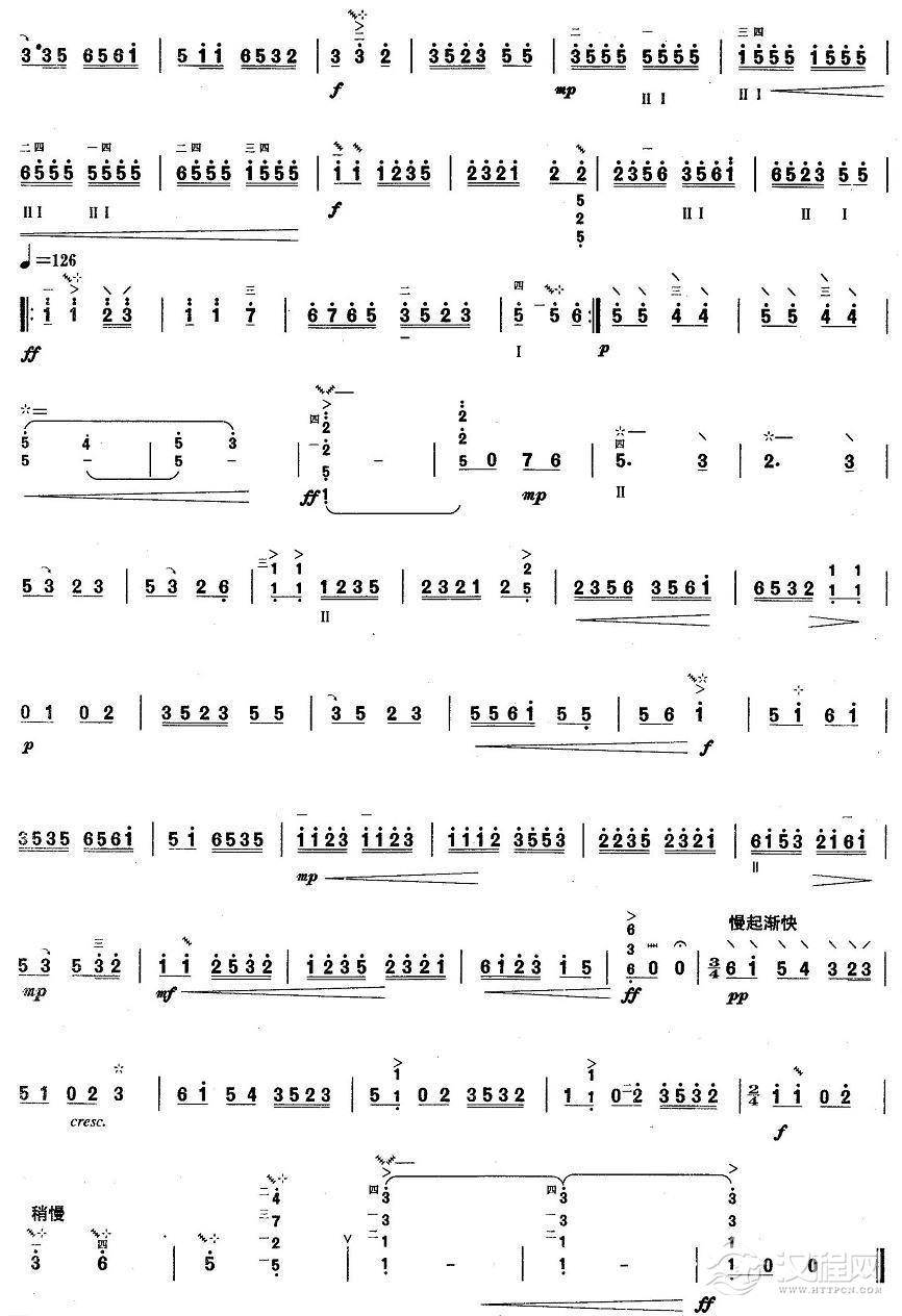 曲谱大全柳琴考级曲谱【柳琴考级曲目三级:旱天雷】