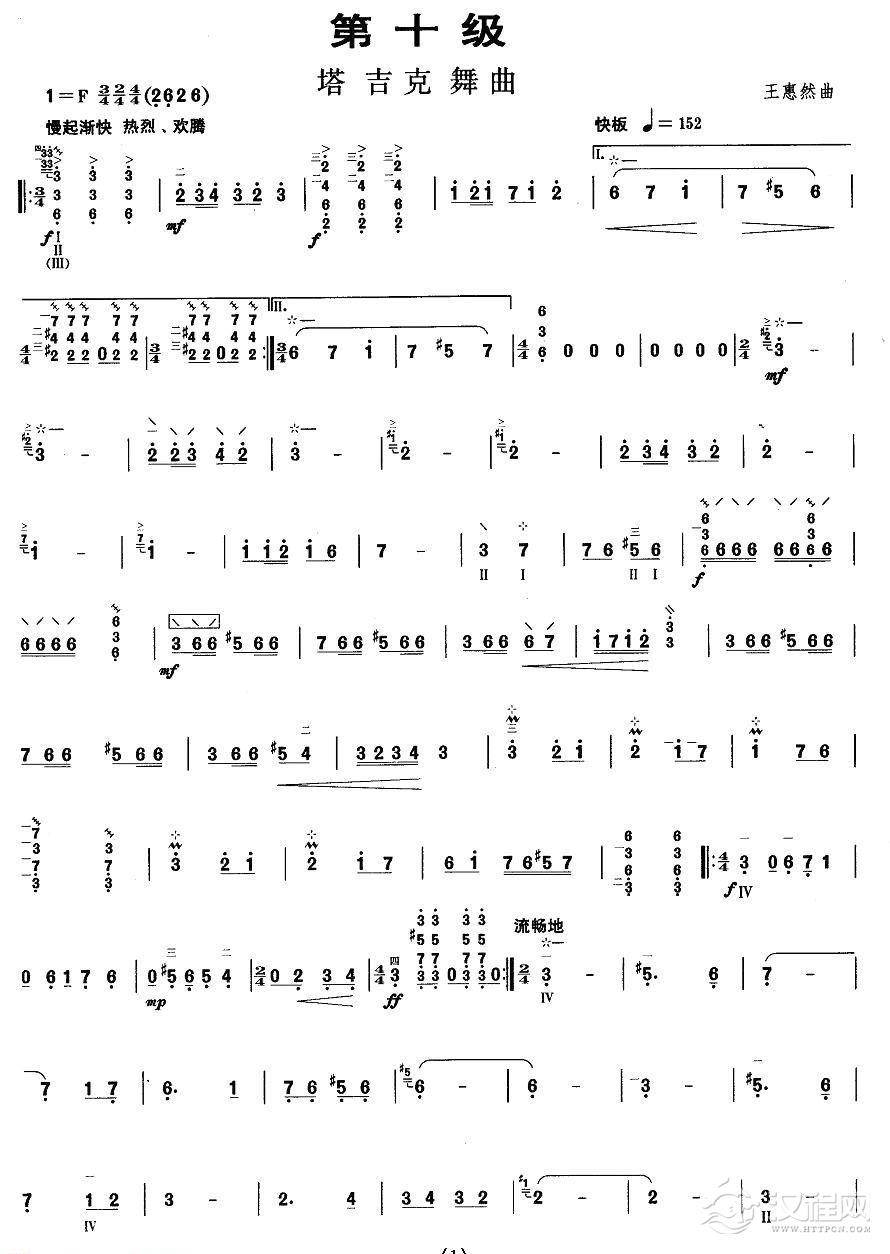 曲谱大全柳琴考级曲谱【柳琴考级曲目十级:剑器】