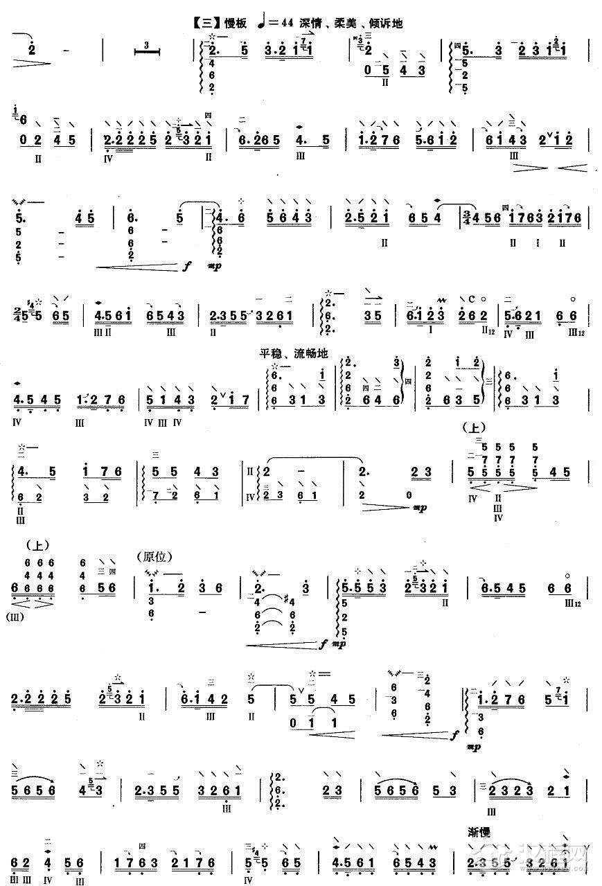 曲谱大全柳琴考级曲谱【柳琴考级曲目九级:悠悠故乡情】