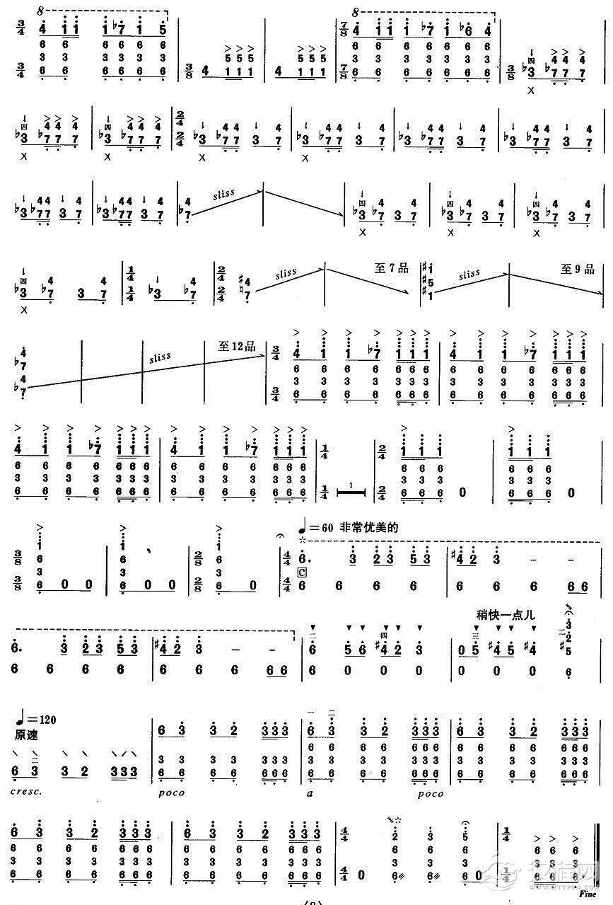 曲谱大全柳琴考级曲谱【柳琴考级曲目十级:塔吉克舞曲】