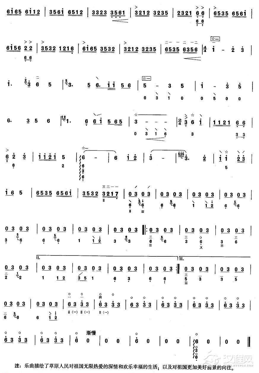 曲谱大全柳琴考级曲谱【柳琴考级曲目九级:节日的拉萨】