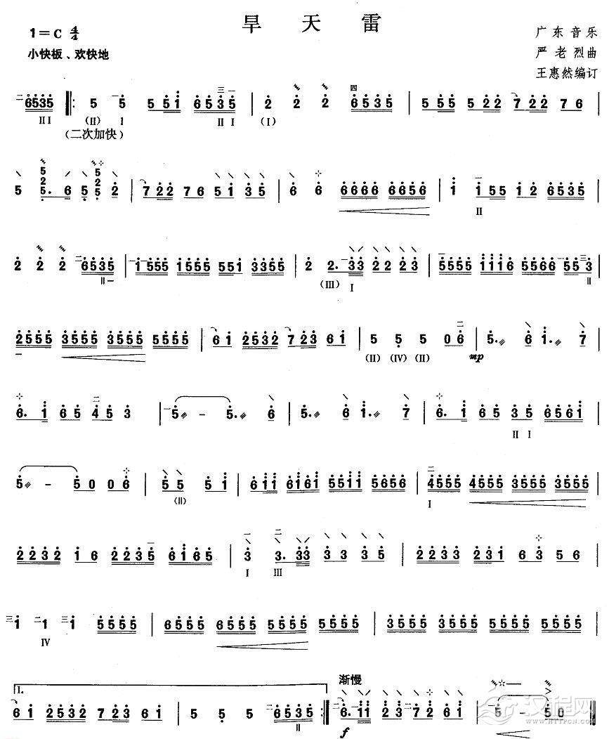 曲谱大全柳琴考级曲谱【柳琴考级曲目一级:金蛇狂舞】