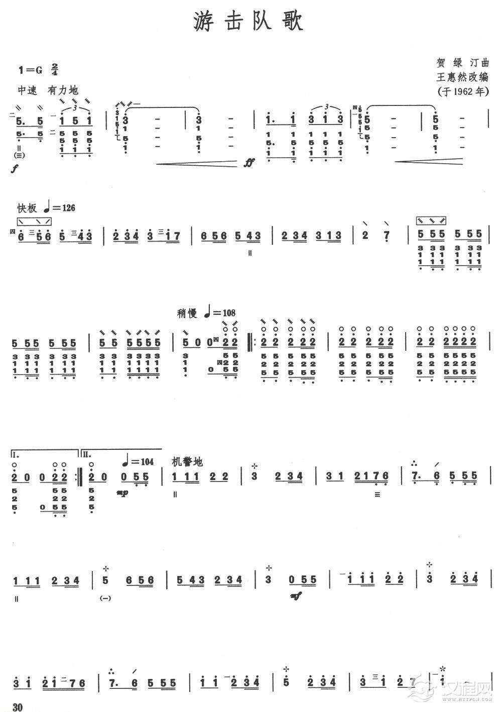 曲谱大全柳琴考级曲谱【柳琴考级曲目六级:雨后庭院】