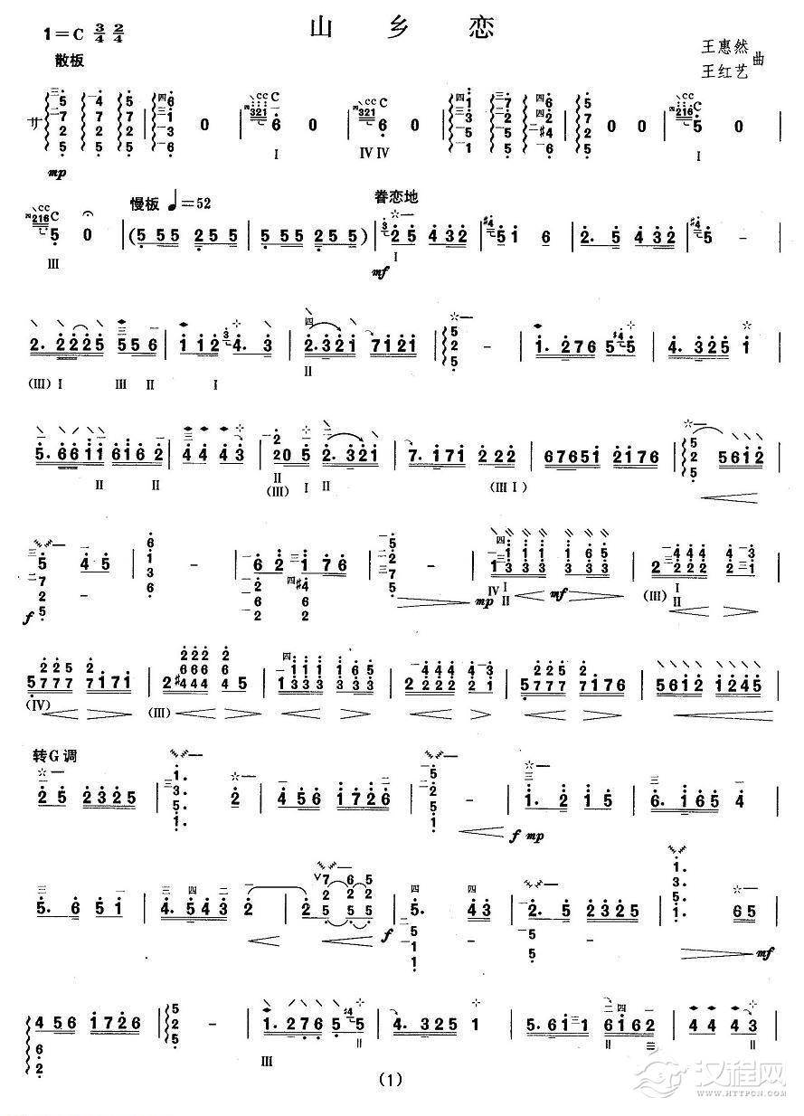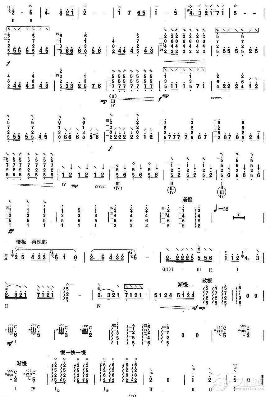 曲谱大全柳琴考级曲谱【柳琴考级曲目六级:雨后庭院】