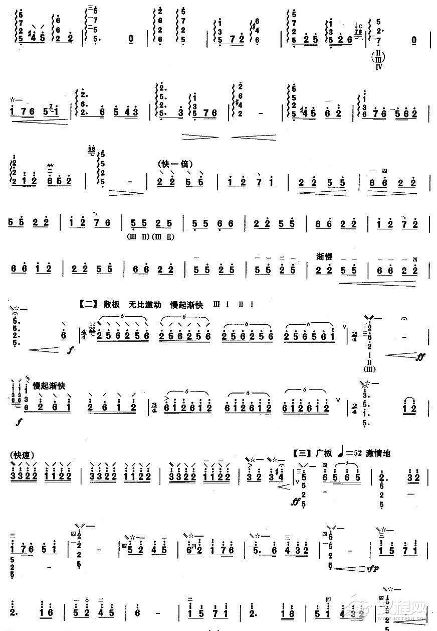 曲谱大全柳琴考级曲谱【柳琴七级:欢腾的天山】